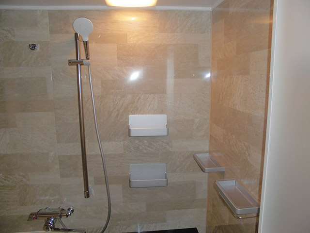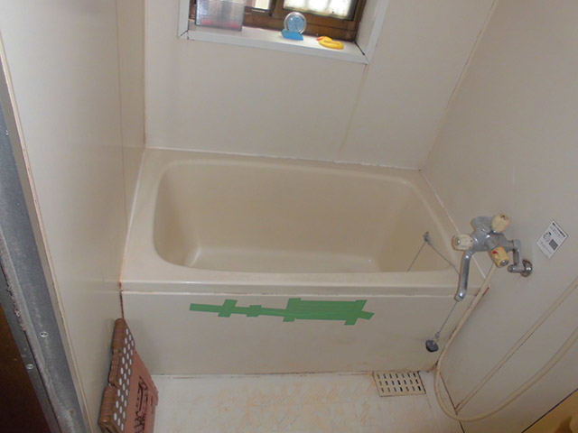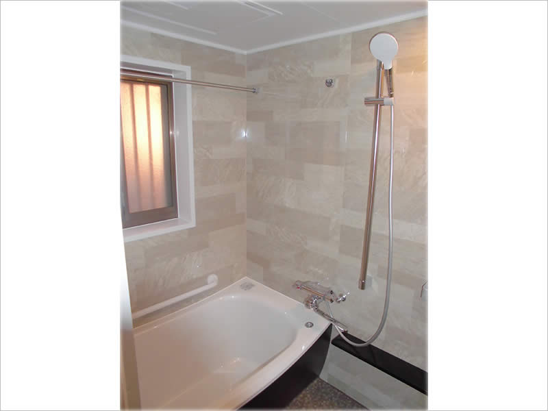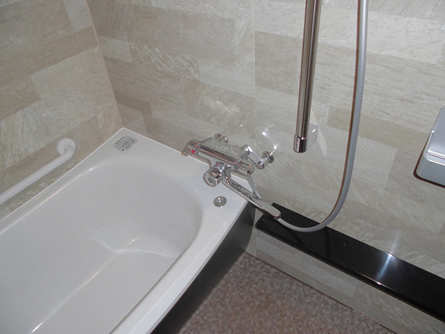 浴槽の一部が破損し、カビが発生しているほか、冬場は寒いとおっしゃっていたので、お手入れがしやすく、浴室暖房付のTOTOマンションリモデルシリーズをご提案しました。給湯器は追い炊きなしの既存のものをご希望でしたので、定量⽌⽔タイプの水栓金具をご提案しました。